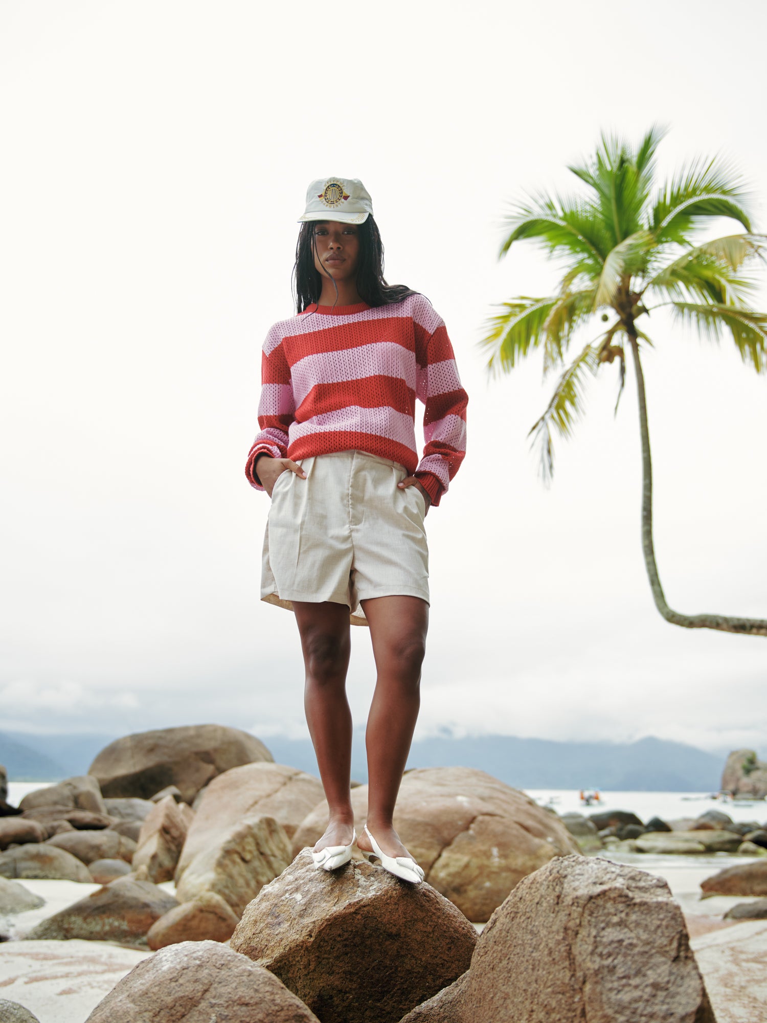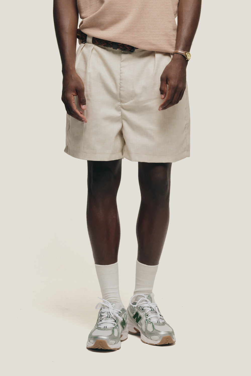 Calça estilo alfaiataria com prega dupla, corte amplo, garantindo maior conforto e elegância. Seu tecido de cor off white apresenta visual rústico, já que sua trama possui pequenas ranhuras. A calça é ideal para compor outfits mais elegantes que combinam praticamente com qualquer parte de cima do seu armário.