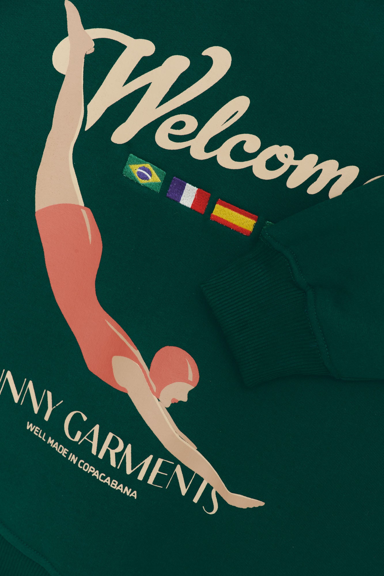 Moletom sem capuz com modelagem boxy e tecido estruturado. O destaque vai para a mistura de técnicas de estamparia: As bandeiras dos países são feitas em bordado de alta resolução e as demais artes, em serigrafia. Peça icônica, que eleva o seu guarda roupa e agrada os amantes do estilo vintage, casual e streetwear.