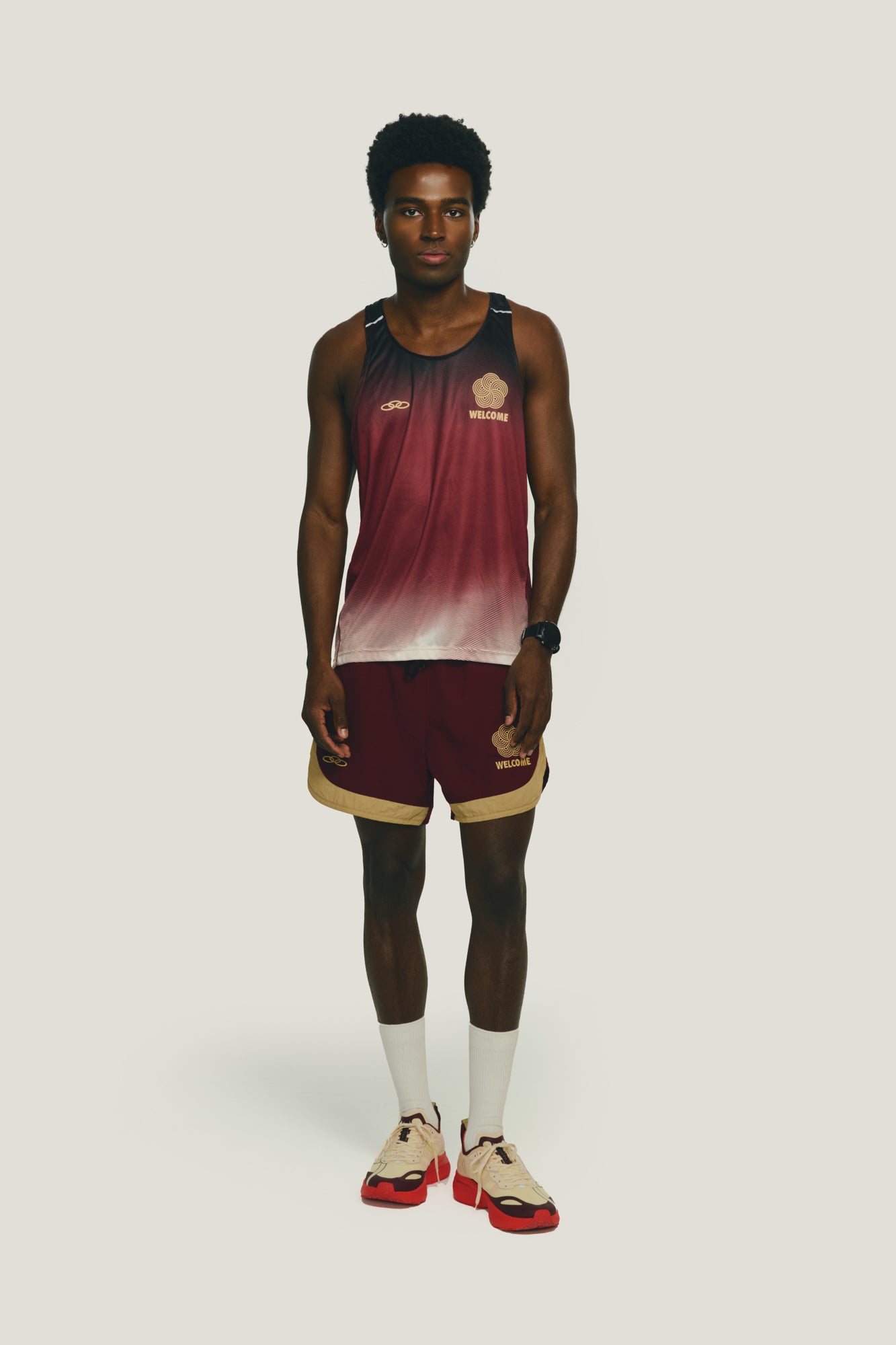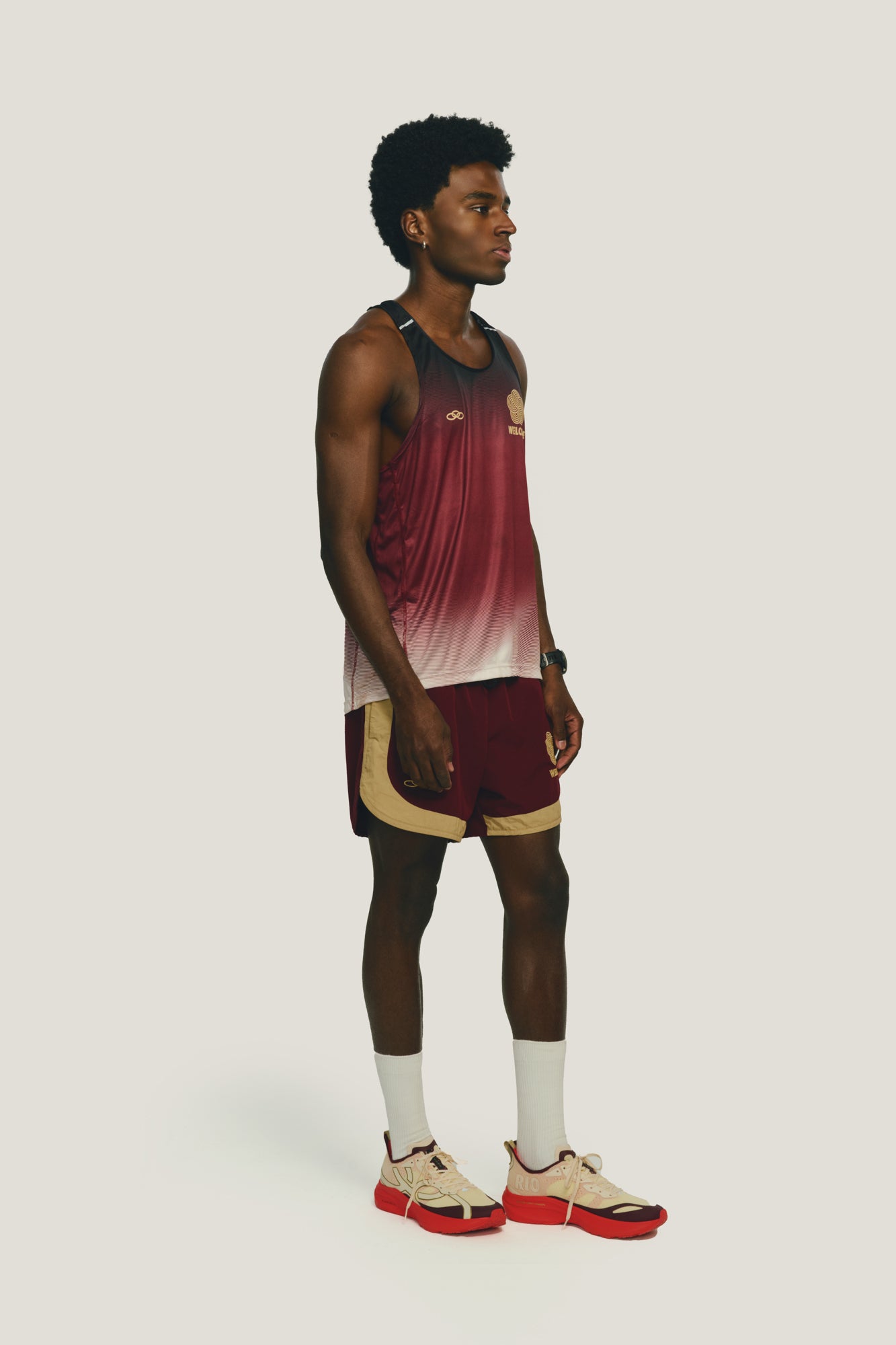 A regata da collab Welcome e Olympikus foi inspirada no universo da corrida e seu tecido garante leveza, flexibilidade e secagem rápida. Sua estampa é exclusiva, combinando com as cores principais da coleção. A modelagem é mais cavada e com as costas mais compridas, proporcionando mais ventilação e liberdade de movimento. Possui refletivos estratégicos na alça além da logo das duas marcas no peito e nas costas.
