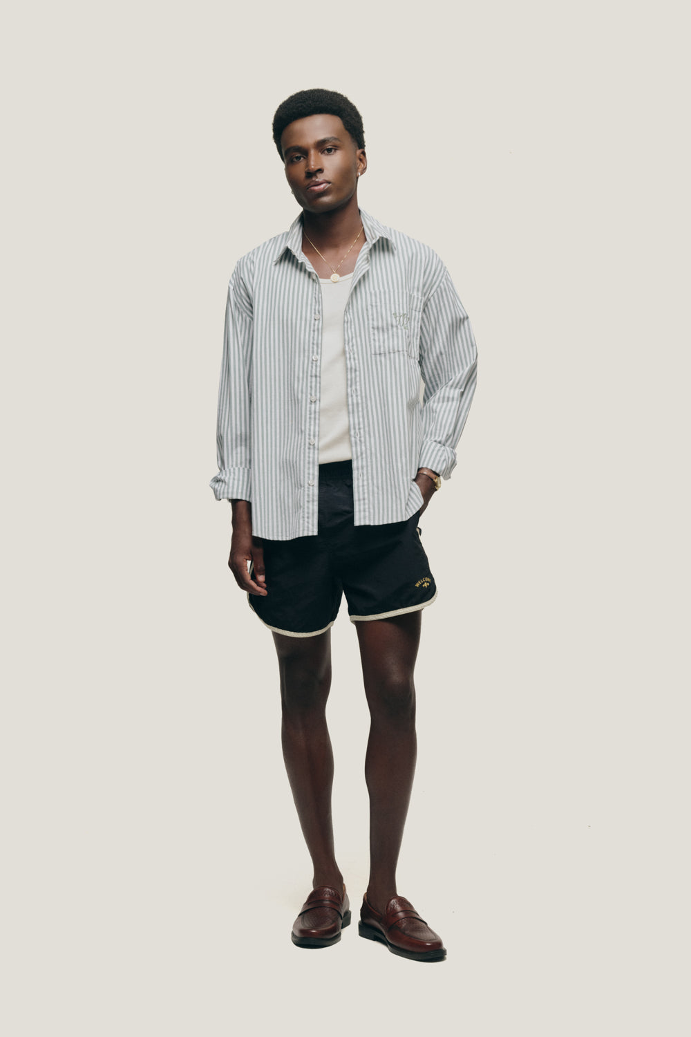 Short esportivo com modelagem retrô e tecido de secagem rápida. Possui bolsos laterais fundos e traseiro com fecho em zíper para maior segurança. Seu cadarço interno é de poliéster com ponteira emborrachada. Possui bordado assinando a marca Welcome na barra do short na cor ocre. Peça muito versátil que pode ser usada tanto para fins esportivos quanto casuais. Disponível nas cores: verde, preto, caramelo e azul claro.