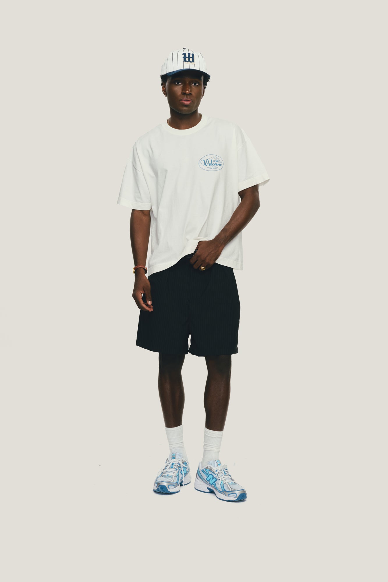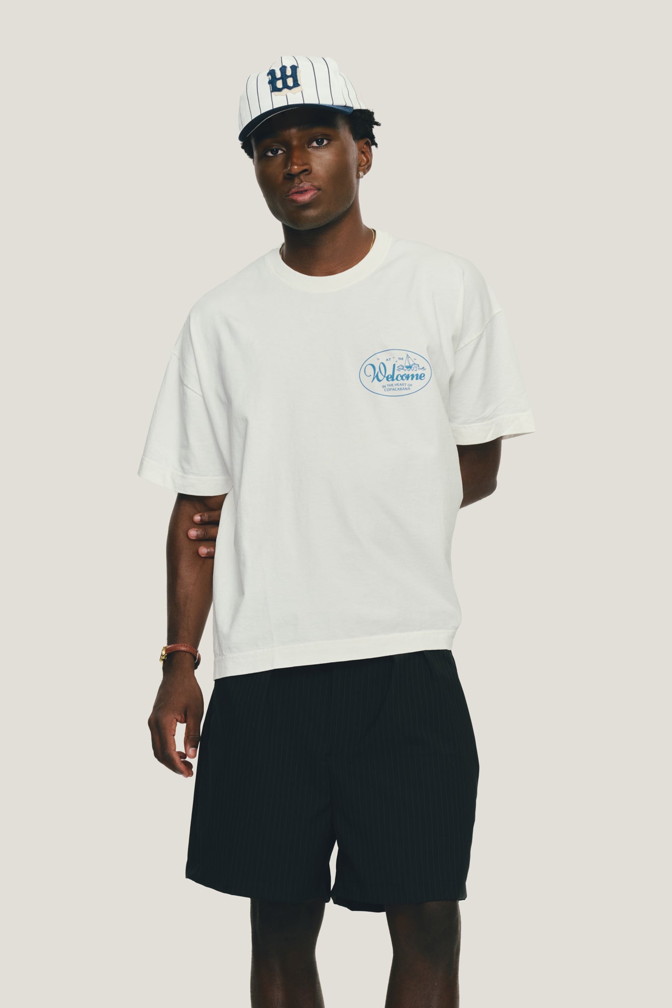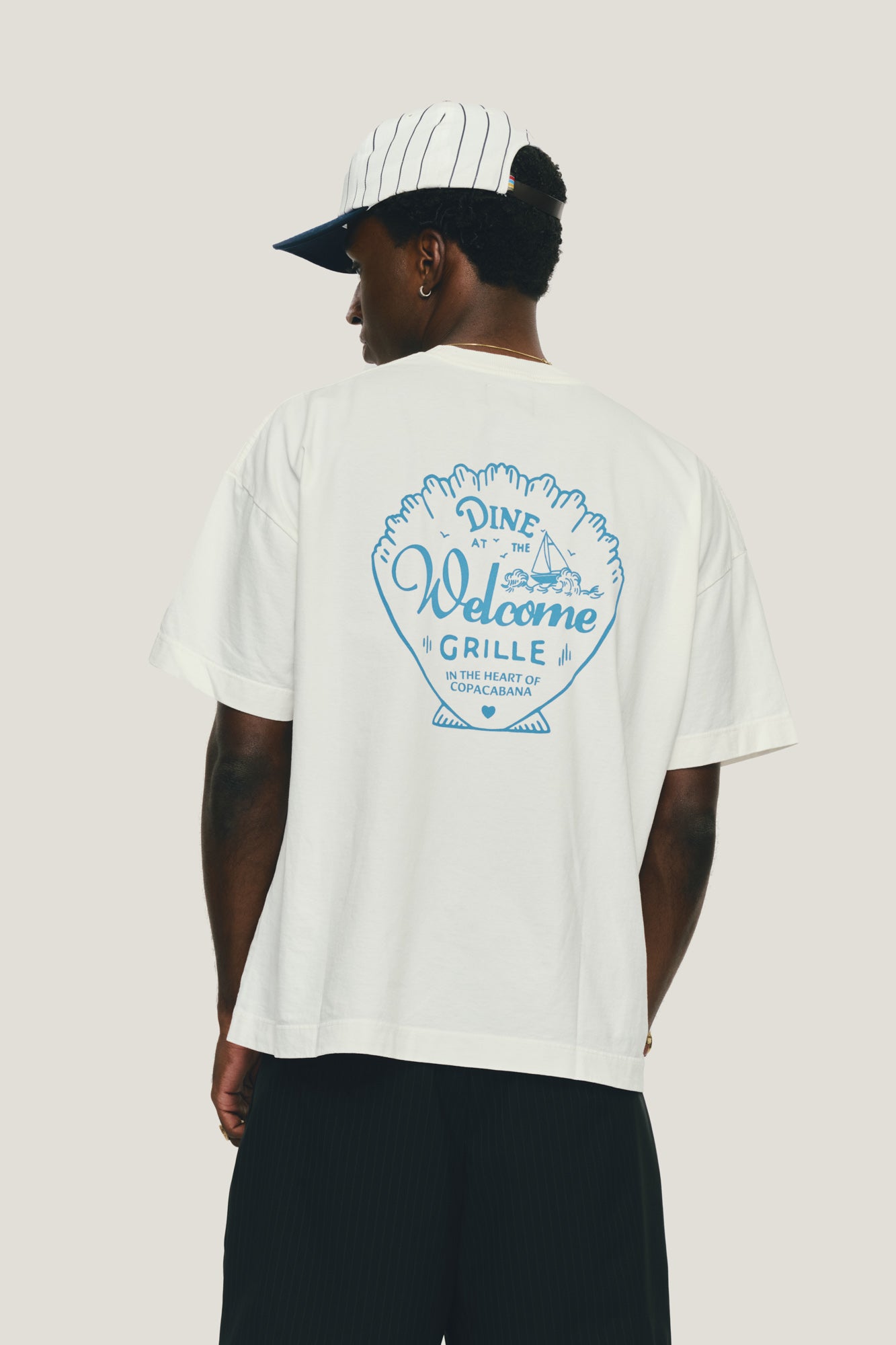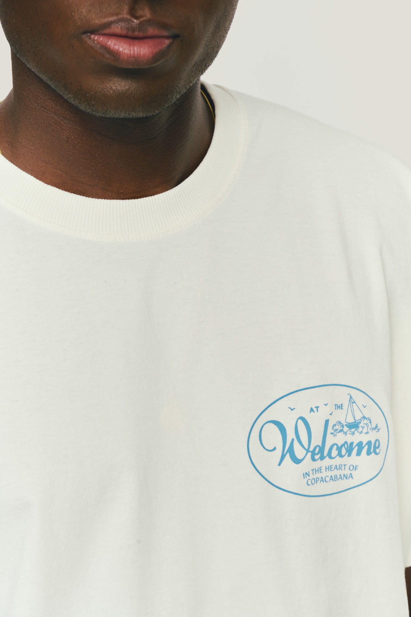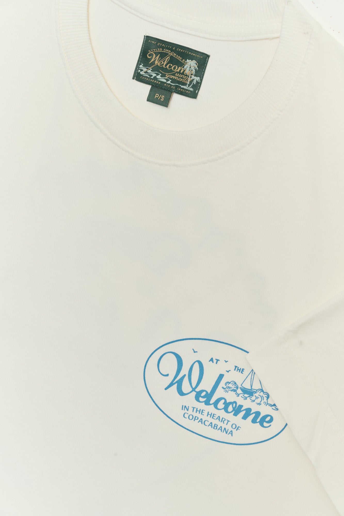 T-Shirt com modelagem boxy e malha premium. Corte bem amplo com comprimento mais curto e ombro deslocado. Estampa exclusiva da Welcome, em serigrafia, no peito e nas costas.