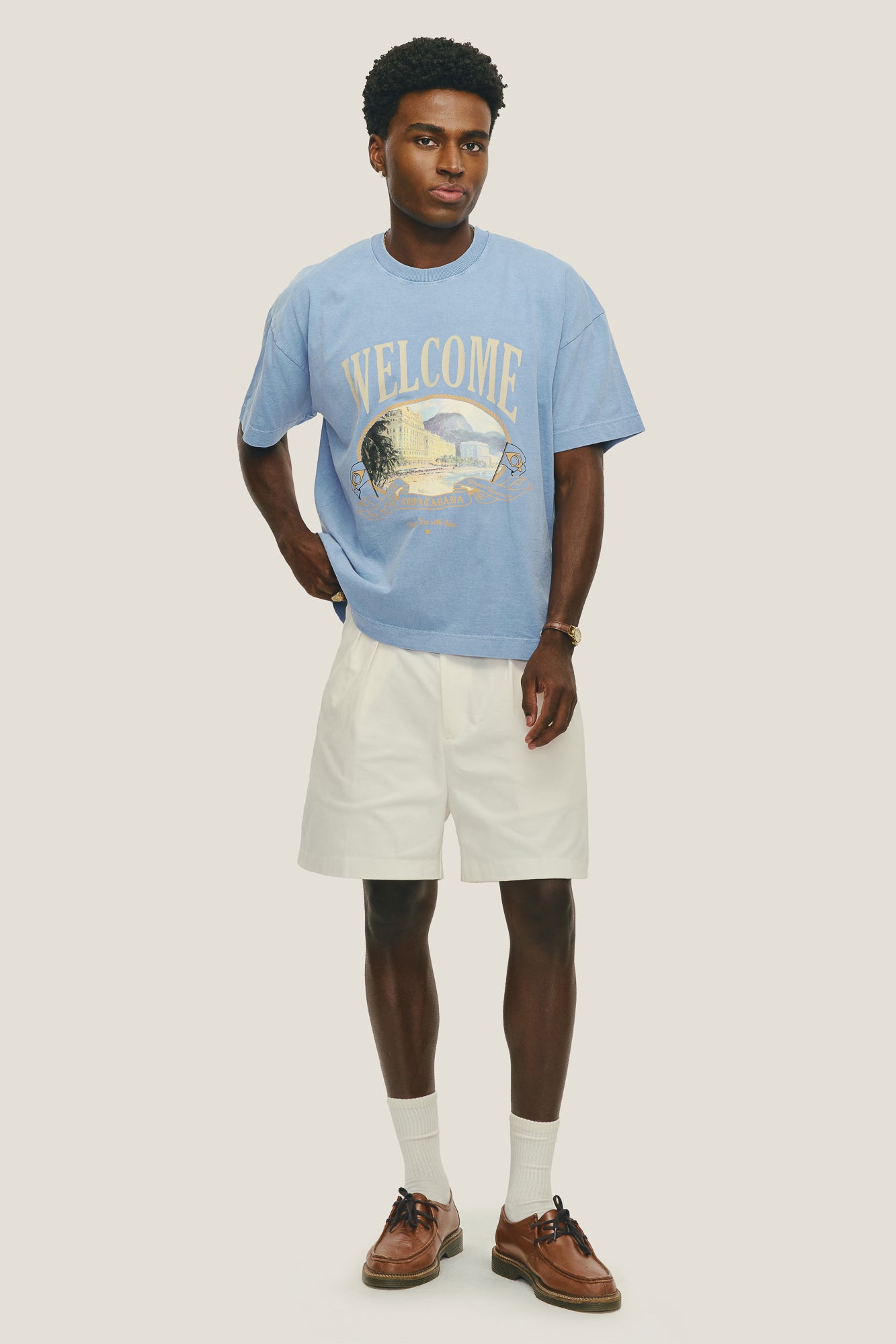 T-Shirt com modelagem boxy e malha premium. Corte bem amplo com comprimento mais curto e ombro deslocado. Estampa exclusiva da Welcome, em serigrafia, no peito e nas costas.